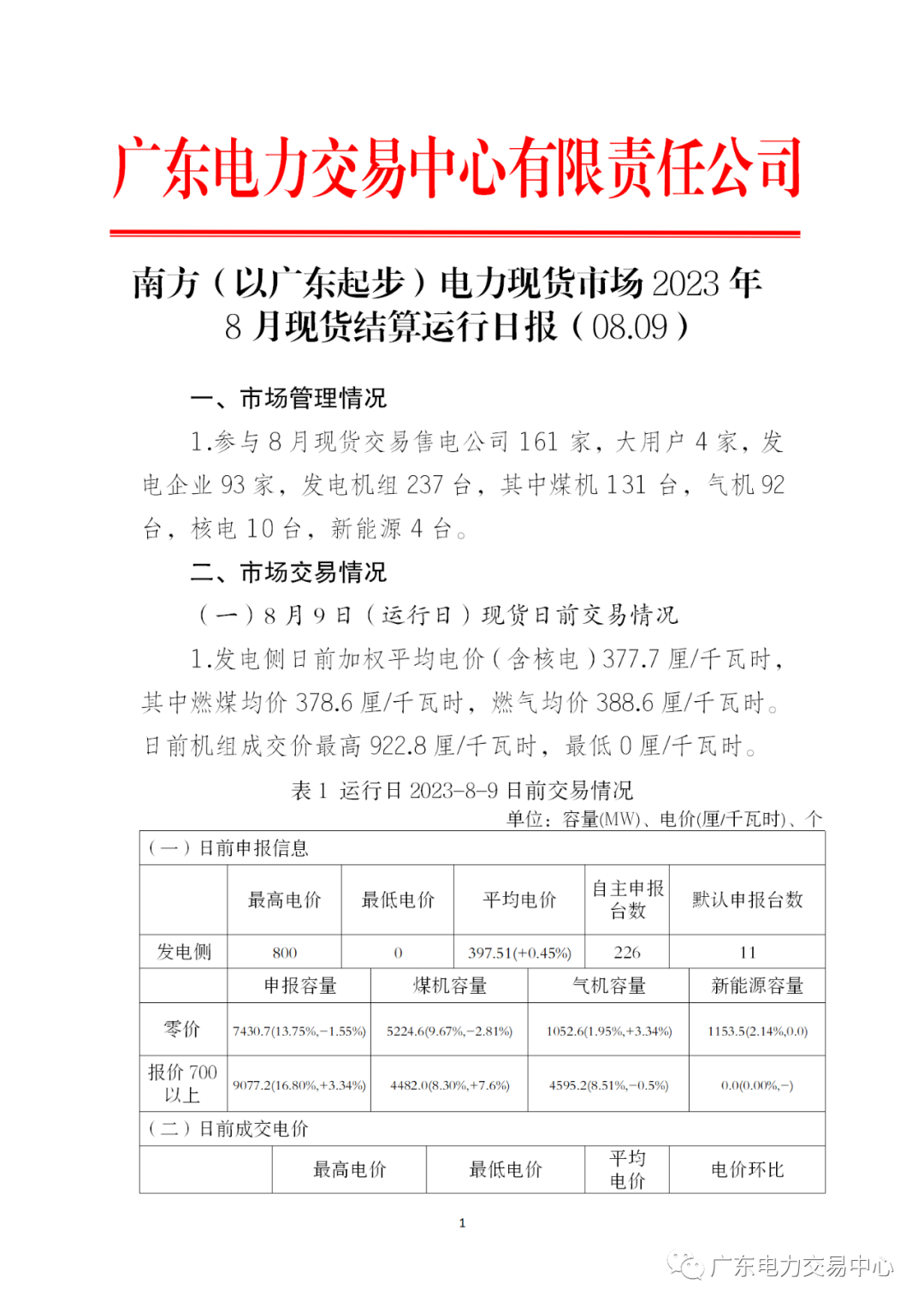 2023年8月9日南方(以廣東起步)電力現(xiàn)貨市場(chǎng)結(jié)算運(yùn)行日?qǐng)?bào)