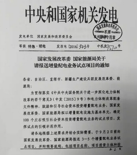 日前,國(guó)家發(fā)改委和國(guó)家能源局以特急的等級(jí)下發(fā)了一份關(guān)于增量配電網(wǎng)業(yè)務(wù)試點(diǎn)申報(bào)的文件,在去年啟動(dòng)2萬(wàn)億《配電網(wǎng)建設(shè)改造行動(dòng)計(jì)劃》和《關(guān)于加快配電網(wǎng)建設(shè)改造的指導(dǎo)意見(jiàn)》后,更進(jìn)一步的實(shí)操行動(dòng),這同時(shí)意味