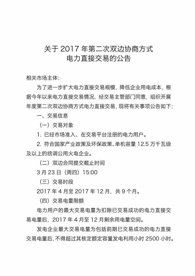 發(fā)電企業(yè):最大交易電量為包括前期已交易成功的電力直接交易電量后,不得超過其核定額定容量發(fā)電利用小時(shí)2500小時(shí)。