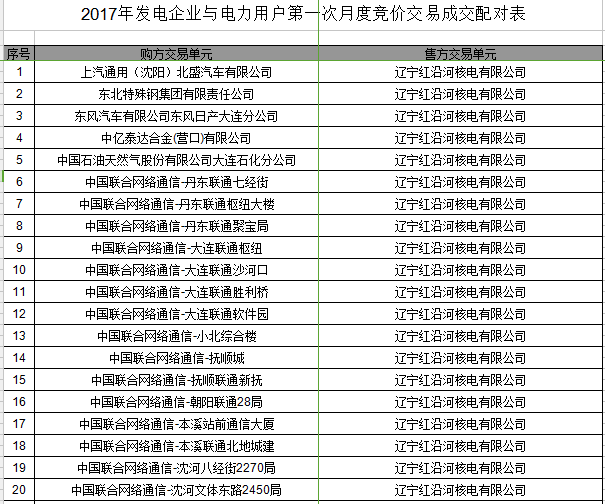 遼寧省第一次電力用戶與發(fā)電企業(yè)月度競(jìng)價(jià)交易結(jié)果已經(jīng)遼寧電力交易中心發(fā)布。此次購(gòu)方交易單元一共有20家,均與遼寧紅沿河核電有限公司一家售方成交,總成交電量5 75億千瓦時(shí),市場(chǎng)成交均價(jià)354 2元 兆瓦時(shí)。2017