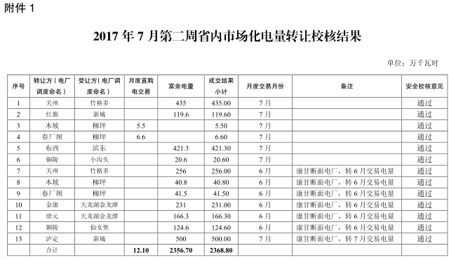 四川7月前兩周市場(chǎng)化電量轉(zhuǎn)讓結(jié)果 已成交電量30686.6萬(wàn)千瓦時(shí)