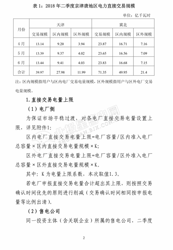 2018年二季度京津唐地區(qū)電力直接交易公告發(fā)布,二季度京津唐地區(qū)電力直接交易規(guī)模為111 32億千瓦時(shí),交易時(shí)間為2018年4月1日至2018年6月30