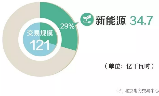 2018年4月,北京電力交易中心交易平臺開展市場化交易39筆,交易規(guī)模121億千瓦時,其中,新能源34.7億千瓦時,占比29%。