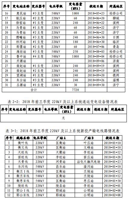 (1)500 千伏及以上系統(tǒng)共有變電站 50 座(含 1000千伏泉城站、昌樂(lè)站、高鄉(xiāng)站,800 千伏廣固、沂南換流站,660 千伏膠東換流站);變壓器 108 臺(tái),變電容量 10425萬(wàn)千伏安;輸電線(xiàn)路 127 條,長(zhǎng)度共計(jì) 8984.62 公里。