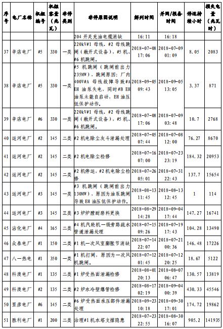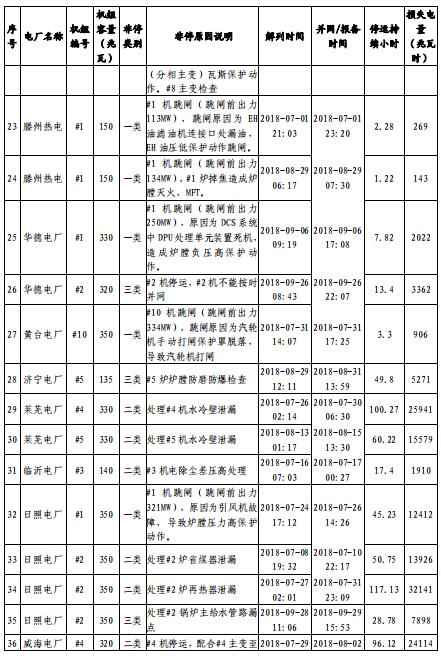 表 4-2:2018 年前三季度直調(diào)機(jī)組退運(yùn)情況表