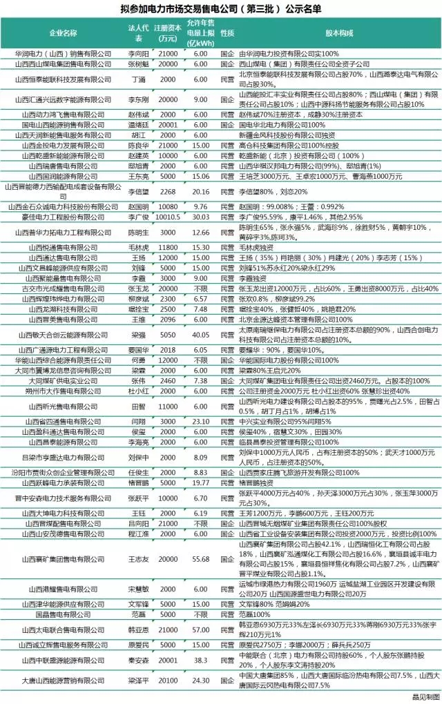 8月8日,山西省經(jīng)信委發(fā)布了擬參加2017年電力直接交易的第三批發(fā)用電企業(yè)公示名單。在此之前(8月4日)還公布了擬參加電力市場(chǎng)交易的第三批售電公司公示名單。本批次公示的售電公司有48家,其中12家屬于國(guó)有企業(yè)