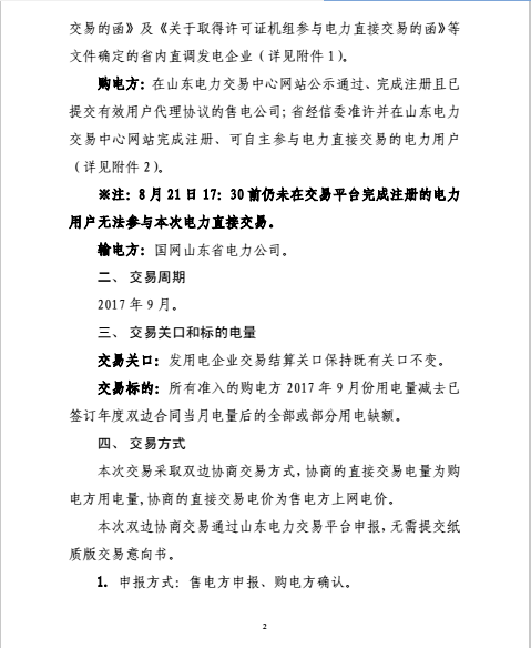 山東9月電力直接交易(雙邊協(xié)商)22日展開