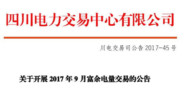 關(guān)于開展2017年9月富余電量交易的公告