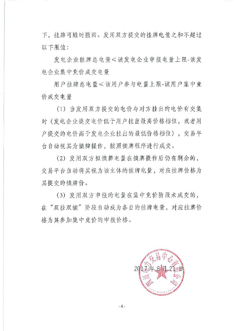 2.2017年富余電量交易采用復(fù)式競價撮合交易方式,按全水電交易執(zhí)行。