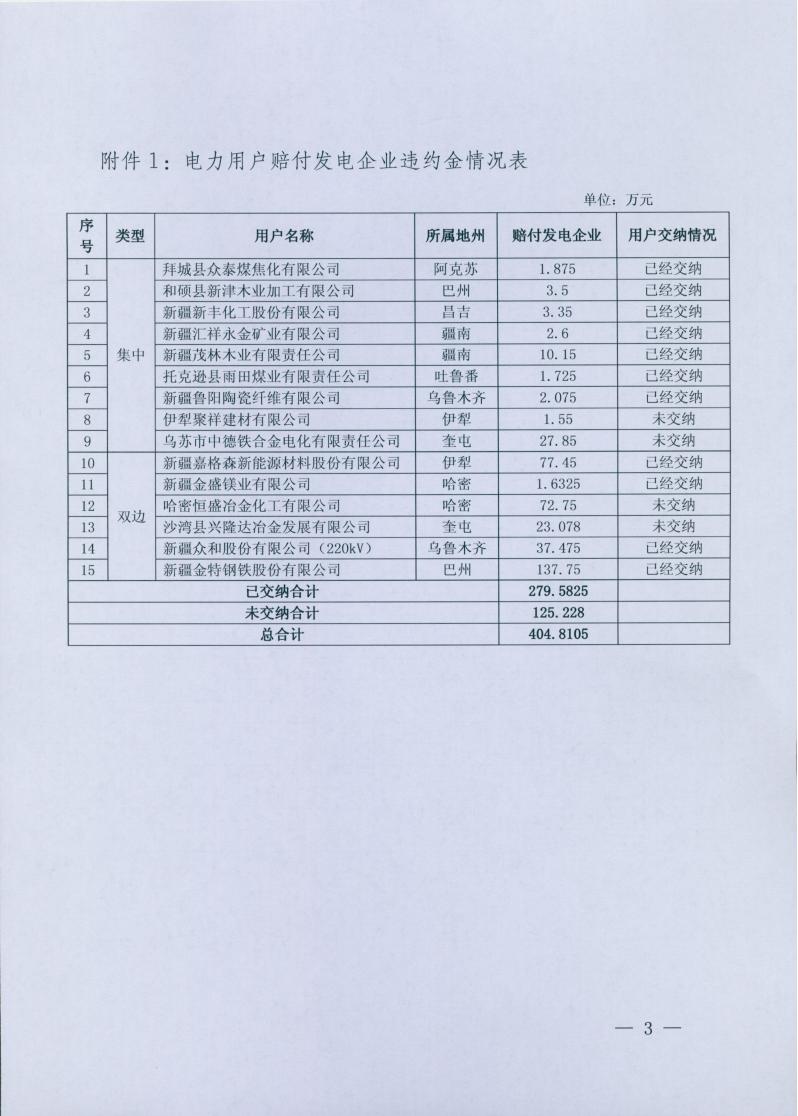 新疆11家電力用戶繳納直接交易違約金279.5825萬(wàn)元