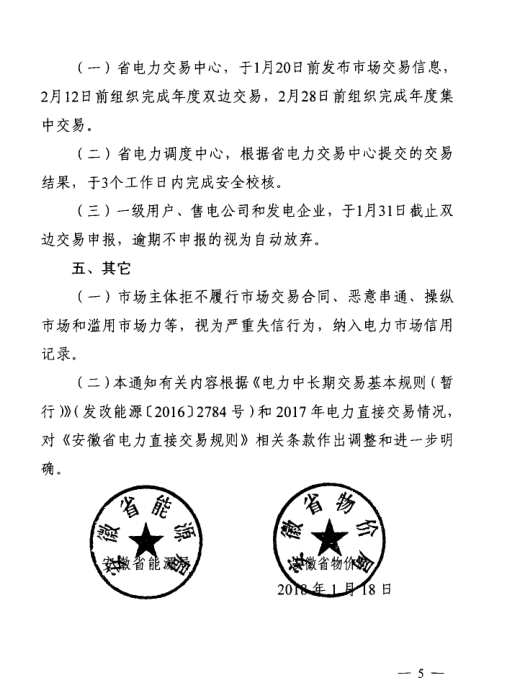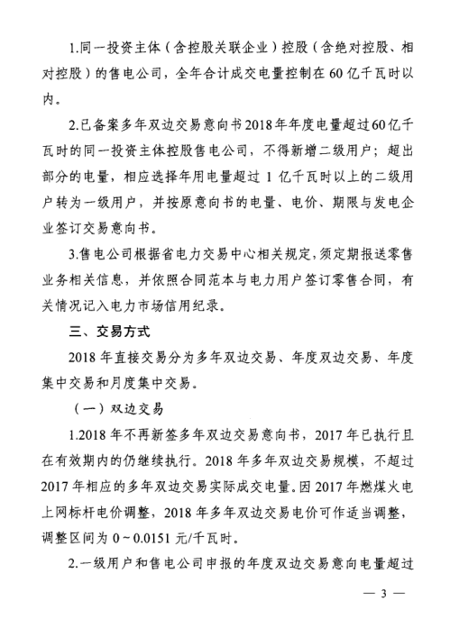安徽省能源局、安徽省物價局日前下發(fā)了《關(guān)于開展2018年電力直接交易工作的通知》,通知中稱,2018年直接交易規(guī)模為580億千瓦時,其中雙邊交易規(guī)模為450億千瓦時,年度集中交易規(guī)模70億千瓦時,月度集中交易規(guī)模60億千瓦時。