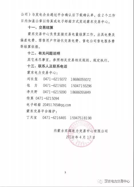 蒙東電力交易中心日前發(fā)布了《呼倫貝爾地區(qū)2018年5月份電力用戶與發(fā)電企業(yè)直接交易公告》,本次5月份風(fēng)火比例為3:7,風(fēng)電企業(yè)優(yōu)先認(rèn)購交易電量,剩余直接交易電量由火電企業(yè)認(rèn)購。風(fēng)電認(rèn)購時間2018年4月19日9:00-13:00;火電認(rèn)購時間為2018年4月19日13:00-17:00。