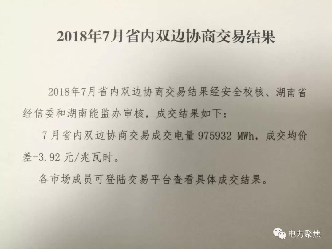 湖南7月月度雙邊協(xié)商交易 成交電量97.5萬兆瓦時