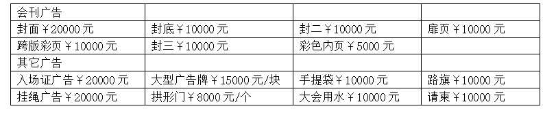 12㎡標準展位(3m*4m)RMB20,000/個; 9㎡標準展位(3m*3m)RMB15,000/個;