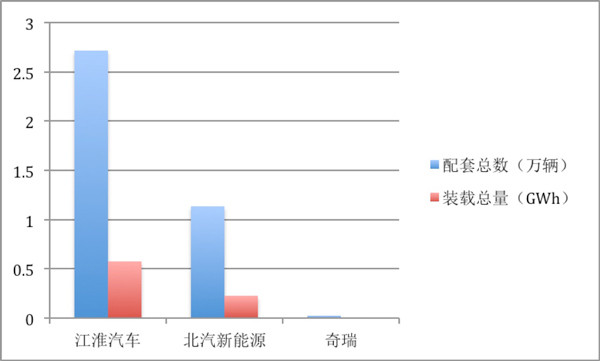 2017年,國軒高科動力電池配套總數(shù)為3.91萬輛,江淮汽車配套裝機數(shù)量最多為2.72萬輛;裝機總量為0.83GWh,江淮汽車排名第一,裝機量達0.58GWh。