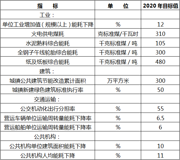 “十三五”主要行業(yè)和部門節(jié)能指標