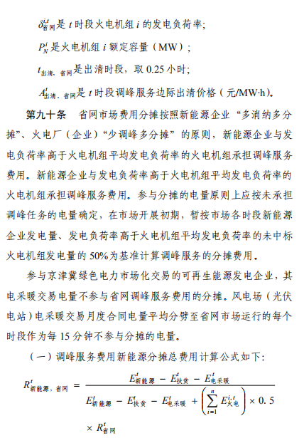 華北電力調(diào)峰輔助服務(wù)市場(chǎng)運(yùn)營(yíng)規(guī)則