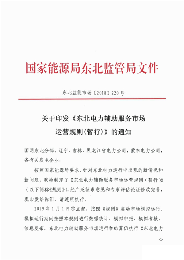 隨著《東北電力輔助服務(wù)市場運營規(guī)則(暫行)》正式印發(fā),東北市場已于2019年1月1日零點起按照新規(guī)則啟動市場模擬運行。