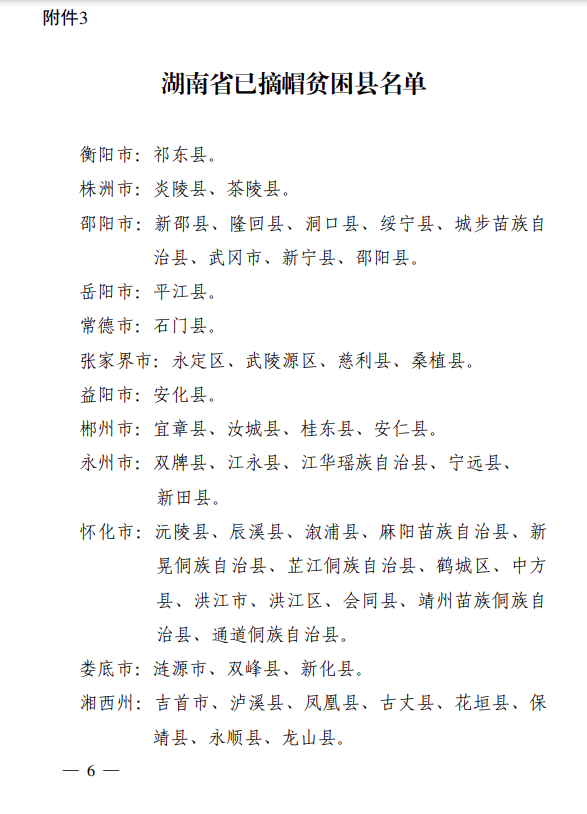 3.湖南省已摘帽貧困縣名單