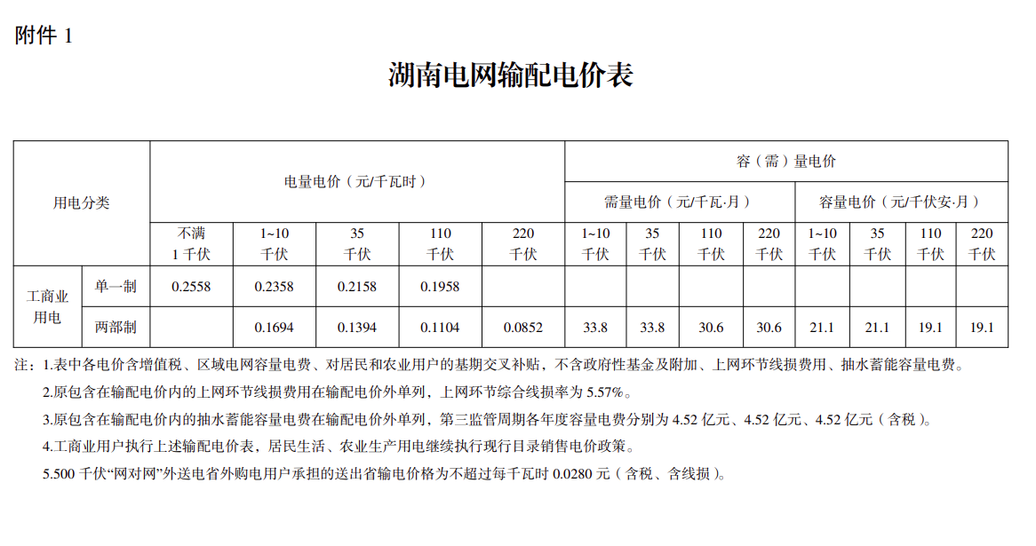 附件:1.湖南電網(wǎng)輸配電價(jià)表