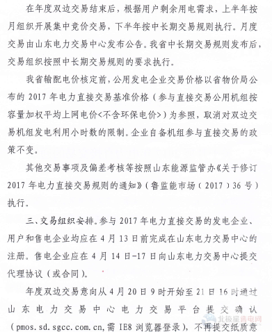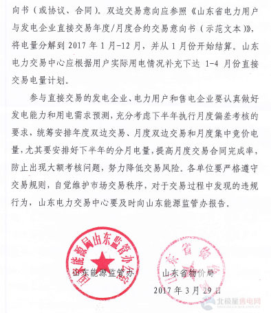 山東《關(guān)于開展2017年電力直接交易的通知》發(fā)布