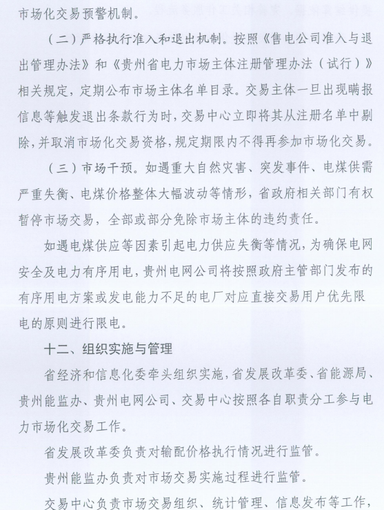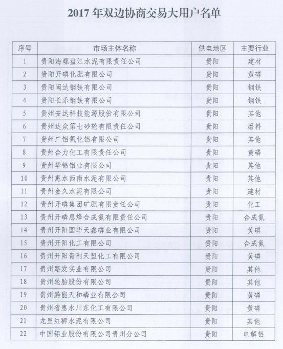 貴州2017電力市場化交易工作實施方案