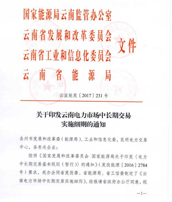 國家能源局云南監(jiān)管辦、云南省發(fā)改委、云南省工信委、云南省能源局日前聯(lián)合下發(fā)了《云南電力市場中長期交易實施細則》,在通知中,明確指出
