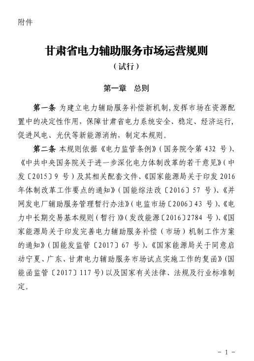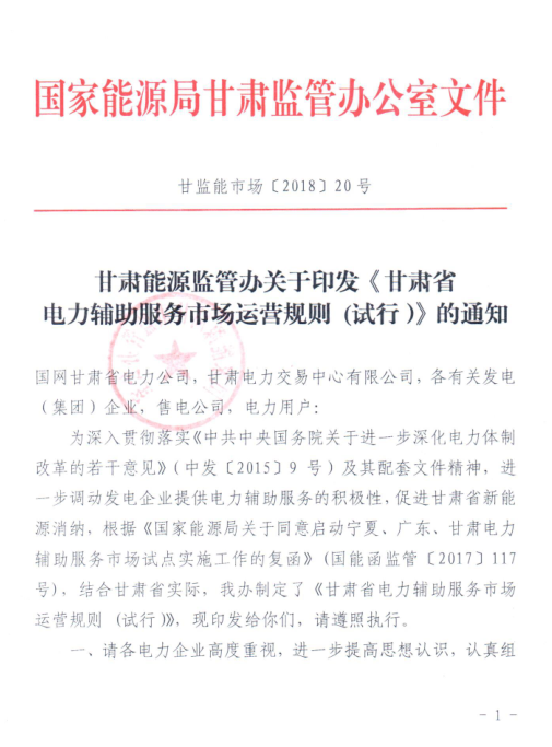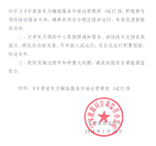 近日,國家能源局甘肅監(jiān)管辦發(fā)布了《甘肅省電力輔助服務(wù)市場運營規(guī)則(試行)》通知。