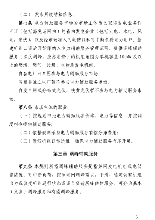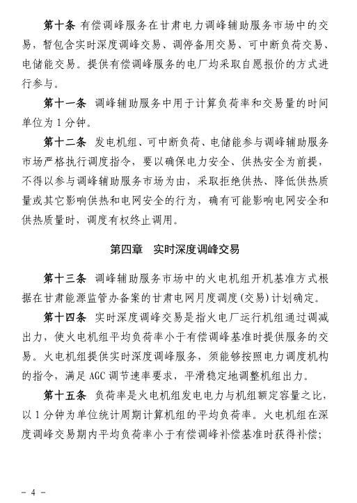 《甘肅省電力輔助服務(wù)市場運營規(guī)則(試行)》 單機容量100MW及以上的燃煤、燃氣等火電機組參與調(diào)峰