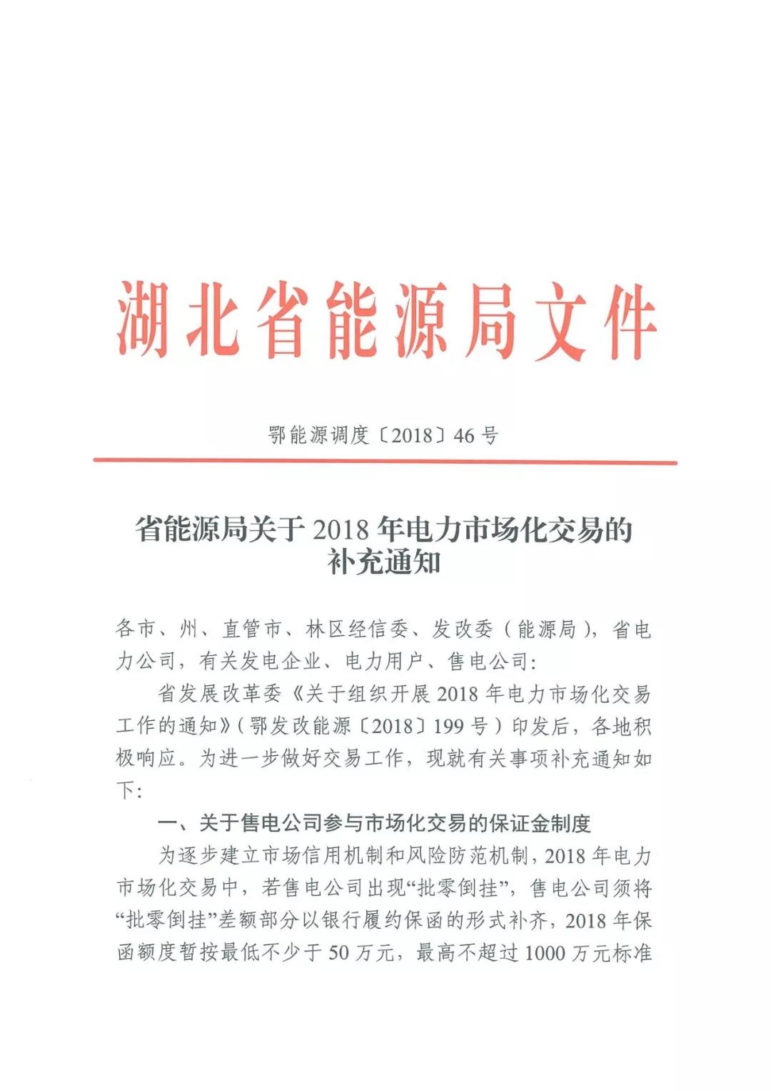 今天,湖北省能源局印發(fā)了《關(guān)于2018年電力市場(chǎng)化交易的補(bǔ)充通知》。通知中最大的亮點(diǎn)就是對(duì)日前在國(guó)內(nèi)售電市場(chǎng)引起爭(zhēng)論的等額價(jià)差傳導(dǎo)原則...