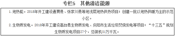 (五)有序發(fā)展地?zé)崮芎蜕镔|(zhì)能。在中東部地區(qū)開展淺層地?zé)崮苜Y源勘探評價(jià),加大淺層地?zé)崮荛_發(fā)利用的推廣力度,開工建設(shè)通渭縣、張家川縣等地淺層地?zé)峁犴?xiàng)目。在嚴(yán)格控制地下水資源過度開采的前提下,加快推進(jìn)中深層地?zé)崮荛_發(fā)利用,在天水、定西等一些有資源優(yōu)勢的地區(qū),創(chuàng)建一批以地?zé)峁┡癁橹鞯氖痉缎^(qū)。完善生物質(zhì)發(fā)電實(shí)施計(jì)劃,在有機(jī)廢棄物資源豐富的種植養(yǎng)殖大縣,積極發(fā)展生物質(zhì)沼氣發(fā)電。積極發(fā)展生物質(zhì)熱電聯(lián)產(chǎn),將農(nóng)林生物質(zhì)熱電聯(lián)產(chǎn)作為縣域清潔供熱的重要方式,加快燃煤鍋爐及散燒煤的替代,開工建設(shè)玉門、瓜州、通渭等地生物質(zhì)熱電聯(lián)產(chǎn)縣域清潔供熱示范項(xiàng)目。穩(wěn)步發(fā)展農(nóng)林生物質(zhì)直燃發(fā)電,重點(diǎn)在具備資源條件的地級市及部分縣城積極推進(jìn)城鎮(zhèn)生活垃圾焚燒發(fā)電項(xiàng)目建設(shè),嚴(yán)格落實(shí)環(huán)保措施,全面提高資源循環(huán)利用水平。在張掖等秸稈資源較為豐富的地區(qū)積極發(fā)展生物質(zhì)燃料乙醇生產(chǎn)技術(shù),提升產(chǎn)品質(zhì)量,滿足交通燃料品質(zhì)需要。