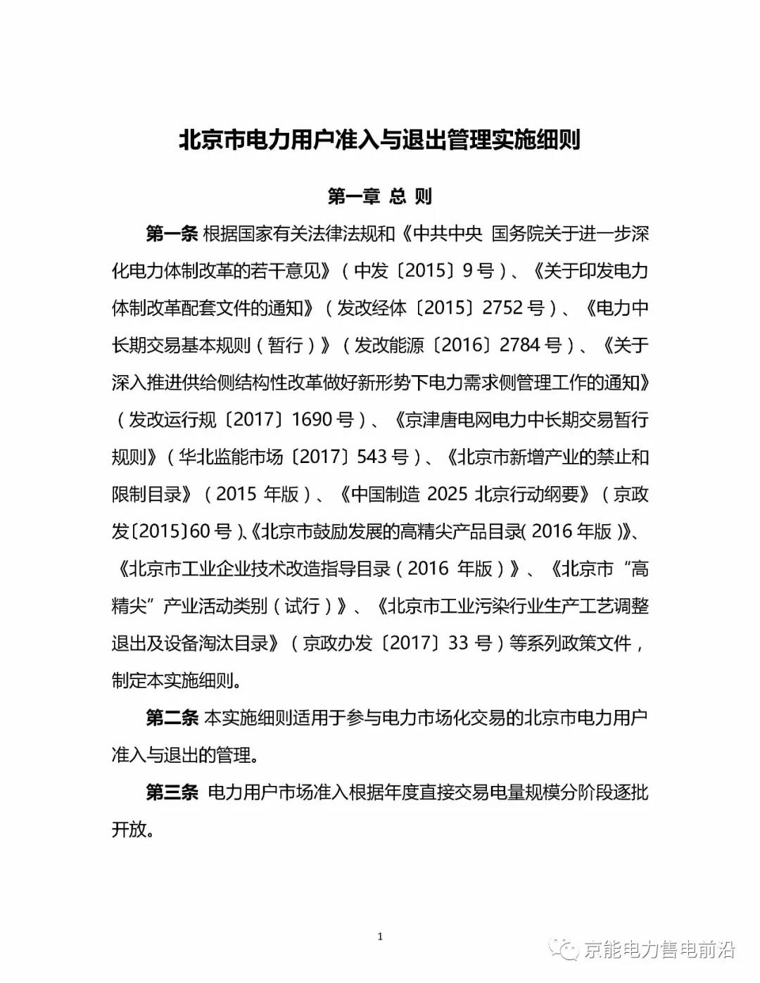 北京市電力用戶準(zhǔn)入與退出管理實(shí)施細(xì)則發(fā)布