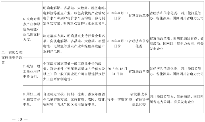 (二)實(shí)施分類(lèi)支持性電價(jià)政策 。綜合運(yùn)用市場(chǎng)、計(jì)劃電量調(diào)節(jié)、富余電量、留存電量等各項(xiàng)支持政策,多措并舉、重點(diǎn)突破,將電價(jià)扶持導(dǎo)向與產(chǎn)業(yè)區(qū)域布局、產(chǎn)業(yè)培育方向結(jié)合起來(lái),根據(jù)現(xiàn)實(shí)基礎(chǔ)和產(chǎn)業(yè)對(duì)電價(jià)承受能力“分類(lèi)施策”“精準(zhǔn)降價(jià)”。