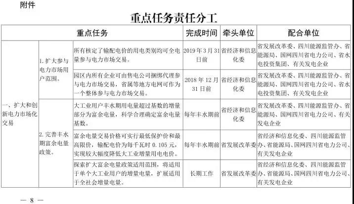 8.用好三州和雅安留存電量。合理制定甘孜、阿壩、涼山、雅安年度留存電量實(shí)施方案,支持甘眉、成阿、成甘、德阿等“飛地”園區(qū)使用留存電量。實(shí)行留存電量計(jì)劃年中評(píng)估調(diào)整機(jī)制。