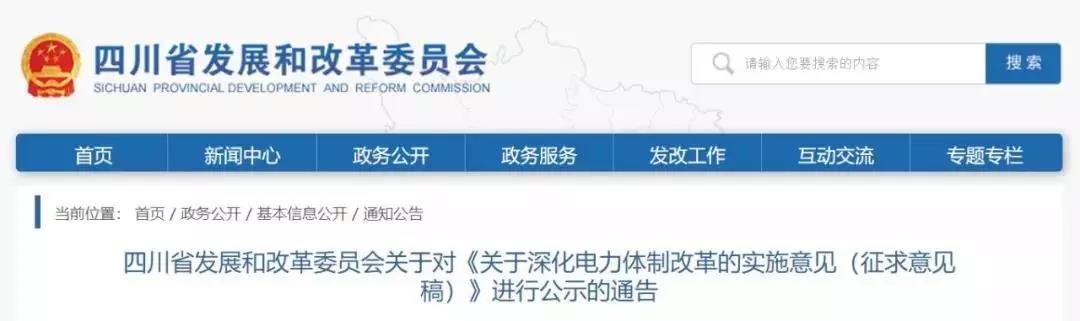 四川關(guān)于《關(guān)于深化電力體制改革的實(shí)施意見(征求意見稿)》進(jìn)行公示的通告