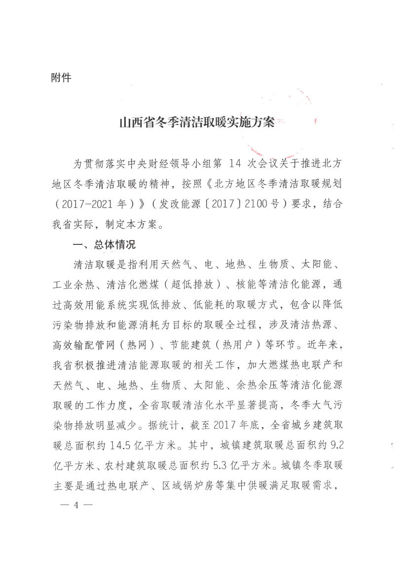 山西省發(fā)改委聯(lián)合山西省財(cái)政廳、山西省環(huán)保廳等十四部門聯(lián)合印發(fā)《山西省冬季清潔取暖實(shí)施方案》,方案中稱,到2021年,山西省清潔燃煤集中