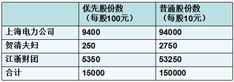 滬西電力股份有限公司各大股東占有的股份數(shù)