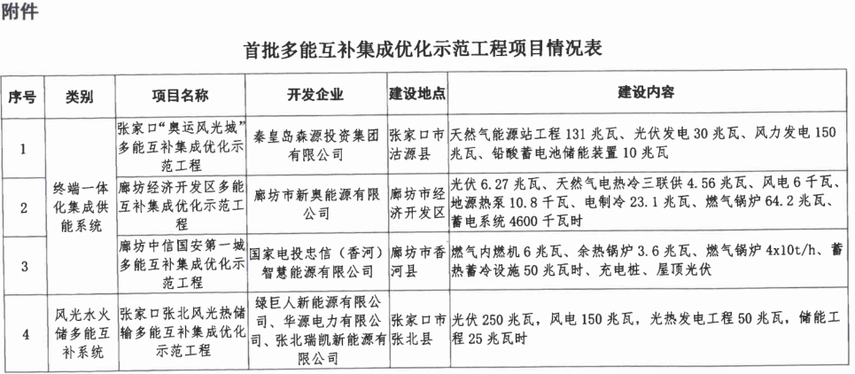 附件:首批多能互補(bǔ)集成優(yōu)化示范工程項目情況表