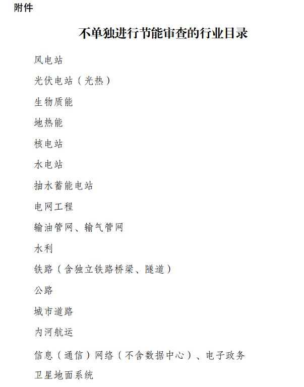 國家發(fā)展改革委關(guān)于印發(fā)《不單獨(dú)進(jìn)行節(jié)能審查的行業(yè)目錄》的通知