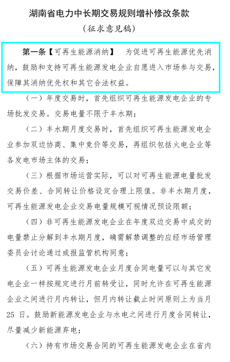 湖南省電力中長(zhǎng)期交易規(guī)則增補(bǔ)修改條款:發(fā)電企業(yè)售給關(guān)聯(lián)售電公司的電量不超過(guò)其市場(chǎng)交易電量的50%