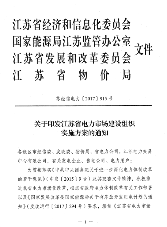 江蘇省經(jīng)信委、國家能源局江蘇監(jiān)管辦、江蘇省發(fā)改委、江蘇省物價局日前聯(lián)合發(fā)布了《江蘇省電力市場建設組織實施方案》。方案中稱,借鑒國外電力市場改革經(jīng)驗,結合江蘇省電力行業(yè)實際和改革實踐,市場化改革初期