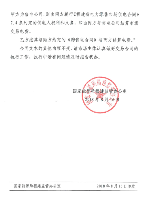 福建能監(jiān)辦日前發(fā)布了關(guān)于完善《福建省電力直接交易三方合同(示范文本)有關(guān)條款的通知》,對(duì)部分條款進(jìn)行了修改完善。