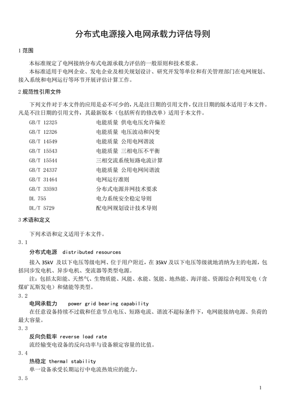 行業(yè)標準|《分布式電源接入電網(wǎng)承載力評估導則》征求意見