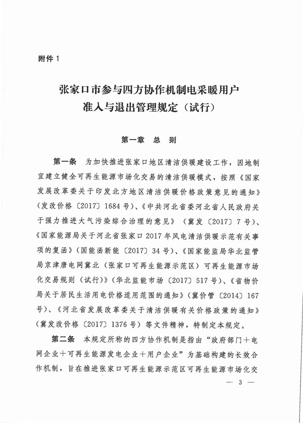 附件:1. 《張家口市參與四方協(xié)作機制電采暖用戶準入與退出管理規(guī)定(試行)》