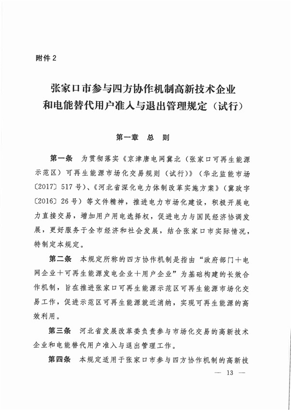 2. 《張家口市參與四方協(xié)作機制高新技術企業(yè)和電能替代用戶準入與退出管理規(guī)定(試行)》