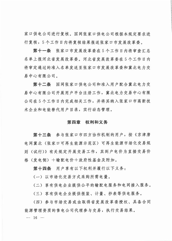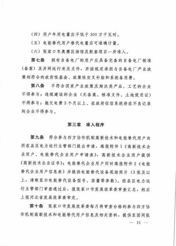 《張家口市參與四方協(xié)作機制高新技術企業(yè)和電能替代用戶準入與退出管理規(guī)定(試行)》的通知