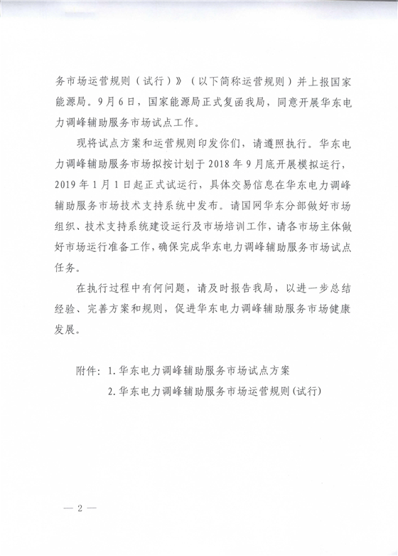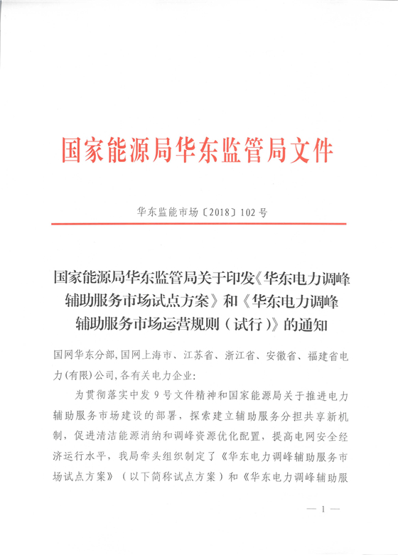 華東能監(jiān)局日前發(fā)布了關于印發(fā)《華東電力調(diào)峰輔助服務市場試點方案》和《華東電力調(diào)峰輔助服務市場運營規(guī)則(試行)》的通知,華東電力調(diào)峰輔助服務市場擬于2018年9月底開展模擬運行,2019年1月1日起正式運行。