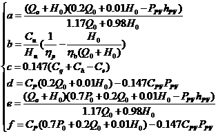 一般項(xiàng)目計(jì)算中ka、kq、kh、r、k、kOM、kH、ke、kQ、kp、ηb為定值(見(jiàn)表1),則常數(shù)a~f的簡(jiǎn)化公式為: