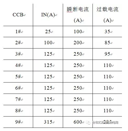 對系統(tǒng)電子斷路器的額定電流選擇為按照系統(tǒng)最高負(fù)荷電流的1.2倍。瞬間過載動作電流選擇電子斷路器的2倍及以上電流,1#斷路器處雖然額定電流只有25A,但根據(jù)經(jīng)驗系統(tǒng)中的尖峰電流經(jīng)常超過幾十安培,為防止擾動造成開關(guān)誤動作,瞬斷電流取100A。