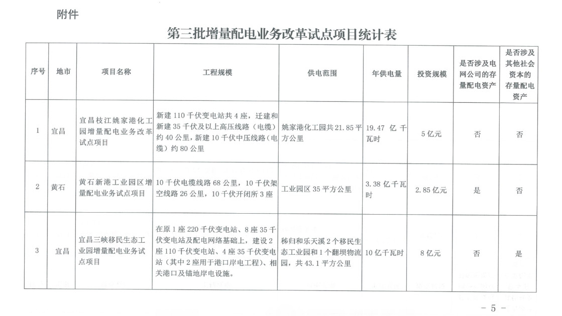 湖北省上報5個第三批增量配電業(yè)務(wù)改革試點項目,至此,湖北省共有11個增量配電業(yè)務(wù)改革試點項目。